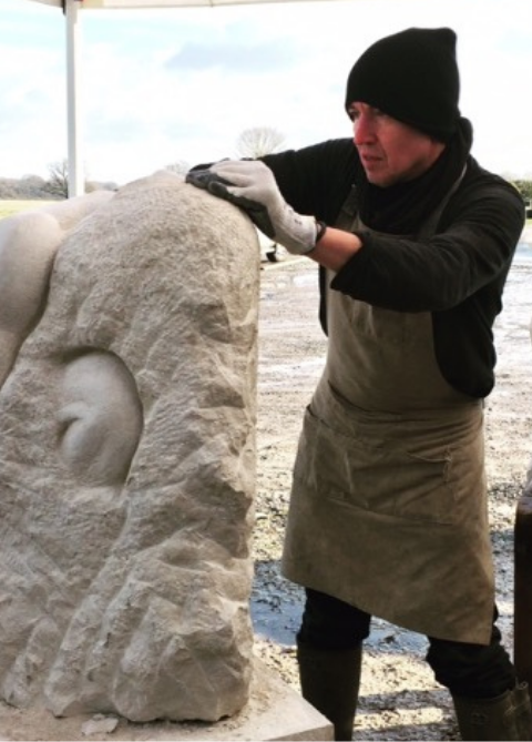 David has been creating sculptures and clay portraits for over 25 years – an interest first sparked after seeing Michaelangelo’s Slaves as a child. He trained as a biomedical engineer, where he gained a solid understanding of anatomy that is evident in his pieces today. His approach is reminiscent of the Italian masters; his figures emerge from unfinished stone, partially worked, leaving the viewer to fill in the detail at times. He works predominantly with Jurassic Coast limestones, favouring traditional tools such as the point, claw and file.