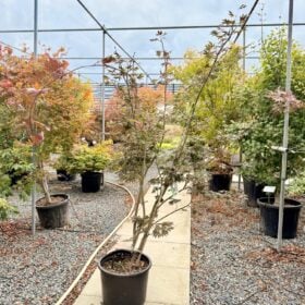 A hardy deciduous tree to 4 x 3 metres over 20 years with arched branches that give an elegantly rounded shape. The new growth is lime green, maturing to an elegant emerald colouration with a red edge to the leaves in summer. In autumn the leaves turn beautifully red and orange.