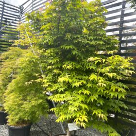 A medium sized, hardy deciduous tree, this can reach 12m and is upright in shape. The palmate, dark green leaves have a slightly glaucous reverse in the summer but turn fantastic shades of deep red and scarlet in the autumn.
