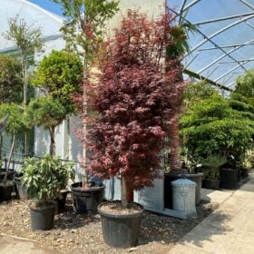 A beautiful, hardy, deciduous acer with deeply dissected foliage. The leaves emerge a silvery-red, mature to a deep, rich, burgundy in summer and give good colour in autumn.