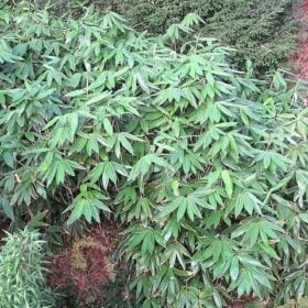 A large leafed bamboo with magical qualities. Its use as a back-drop to a private leafy oasis (a garden) is unsurpassed. Usually grows to about 12ft. Please contact us for stock availability and sizes.