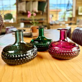 12cm pretty textured shaped vase made from 100% recycled glass. These ornamental vases are great for a few stems, small posies or for reed diffusers….