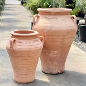 The Terraneo Sori Terracotta pot is an open-jar design with slim lines and a contemporary silhouette. Unfussy, tall and terribly chic. The honey-coloured Cretan terracotta looks warm year-round, and the quality of the clay used ensures it will withstand any winter, guaranteeing the continued aesthetic beauty of these pots. We love the pairing of an ancient material and a modern design: there’s an authenticity to design like this that makes it suitable for any setting: all you need to do is decide what to put in them. …