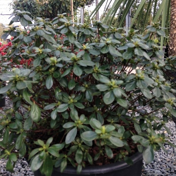 Azalea japonica is a small heath shrub that provides evergreen, bushy growth. Its unique appeal however, is the copious blooming of very beautiful flowers ranging from pink to red, purple and white. It has a compact growth habit ideal for growing in an acidic soil at the front of a border with an Acer. Will provide density and bushiness in winter when the Acer’s leaves have dropped.
