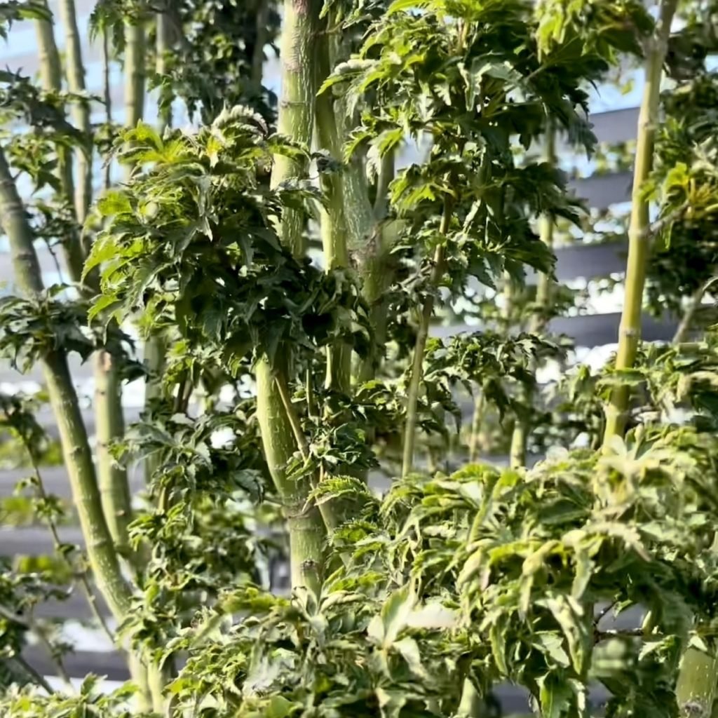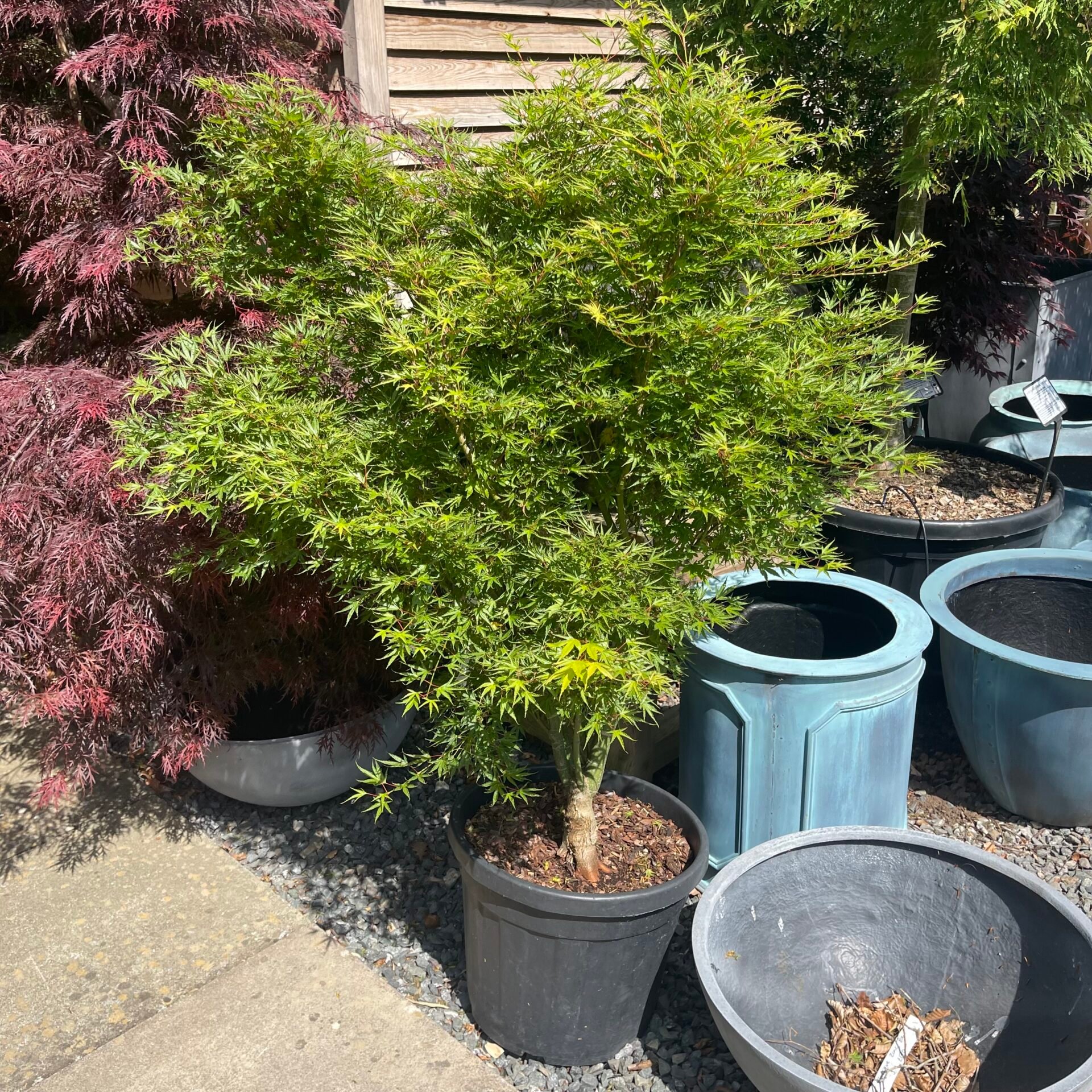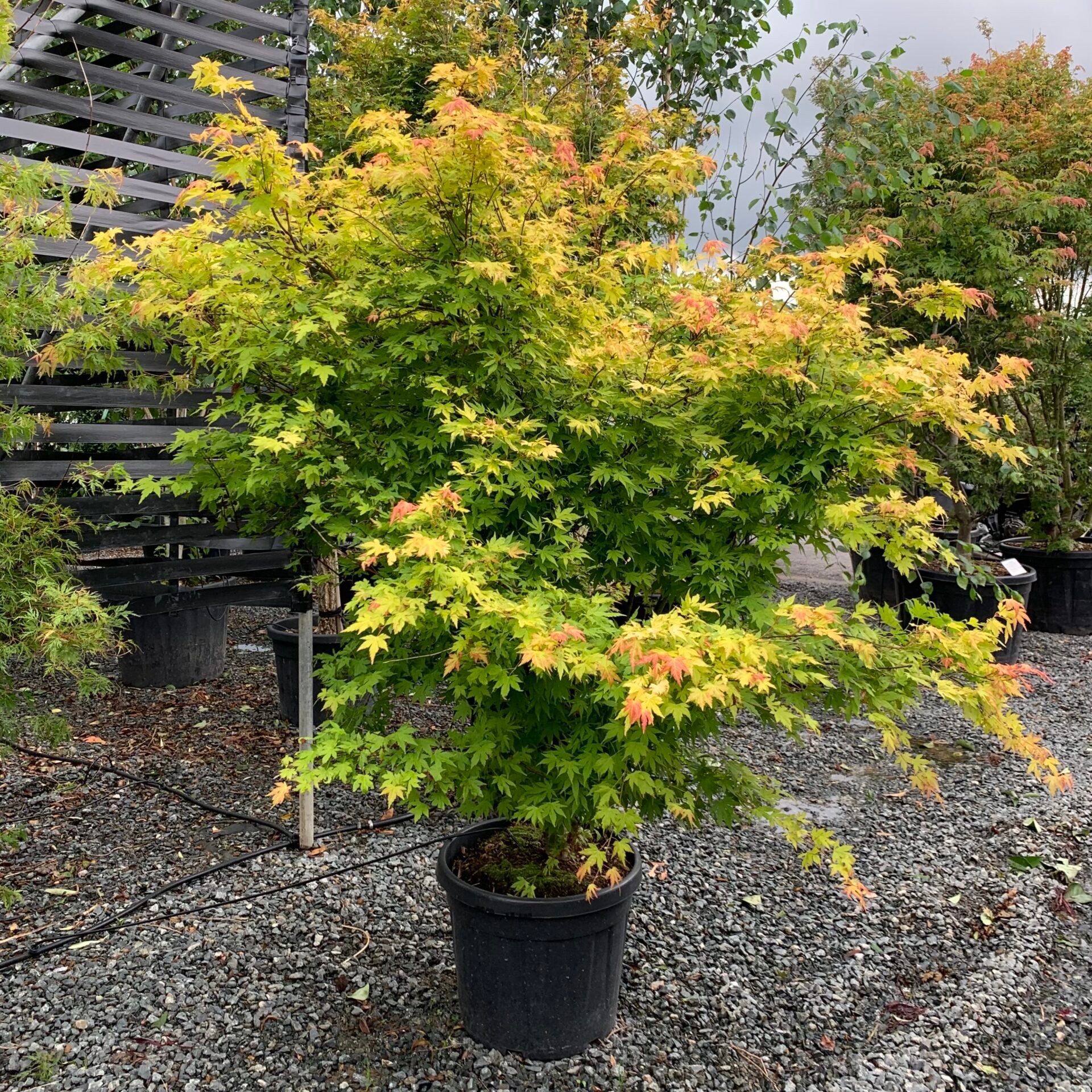 We’ve recently completed work building a large shade house. Designed as a place to keep our ever expanding collection of large Acers, it’s a wonderful place to go hunting or just bask in the flurry of colours, leaf shapes, stems and trunks. The Acer House was finished in 2022 spanning over 450 square feet and is bursting with a vibrant myriad of colour right through to the end of November each year.